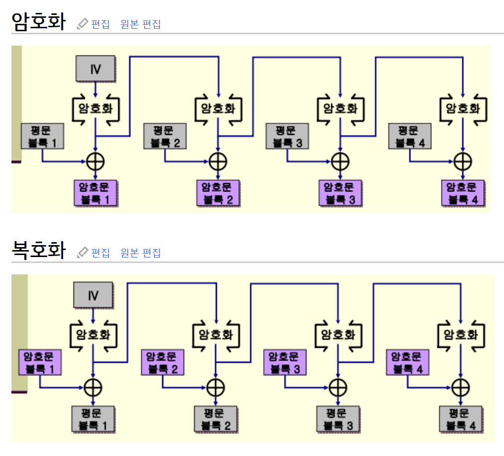 번외로 추가 설명을 하자면 CFB모드와 OFB모드도 있는데