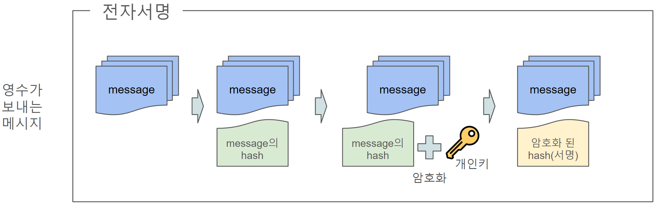 3. message의 hash 값을 개인키로 암호화한다.