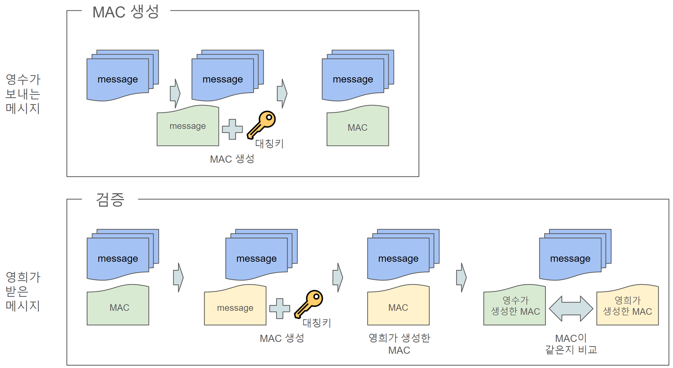 2. 수신자(영희)가 생성한 MAC값과 송신자(영수)가 생성한 MAC값을 비교